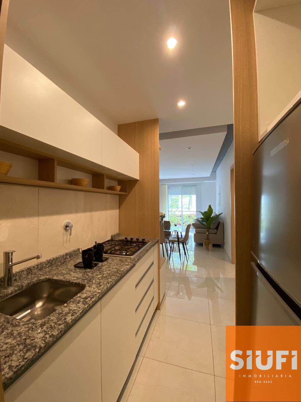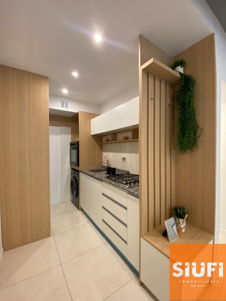 La cocina integrada combina practicidad y estilo, perfectamente equipada para el día a día.