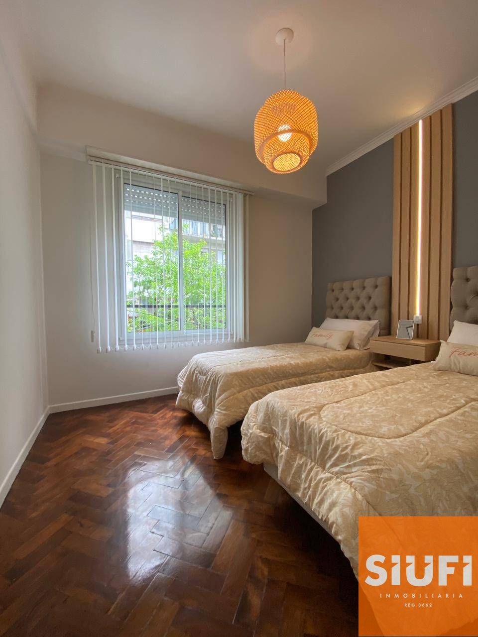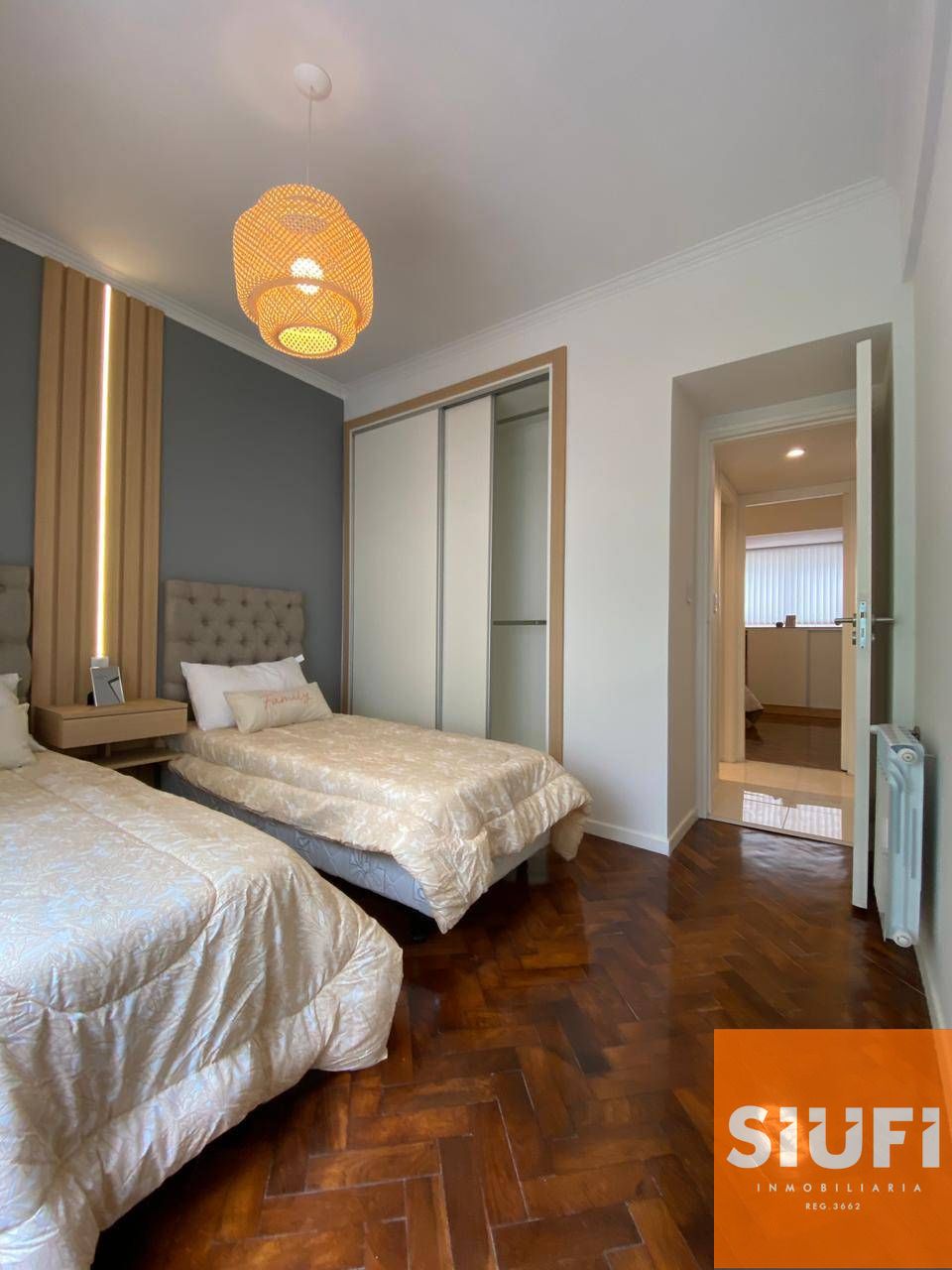 Segundo dormitorio al frente con pisos parquet plastificado y placard a medida