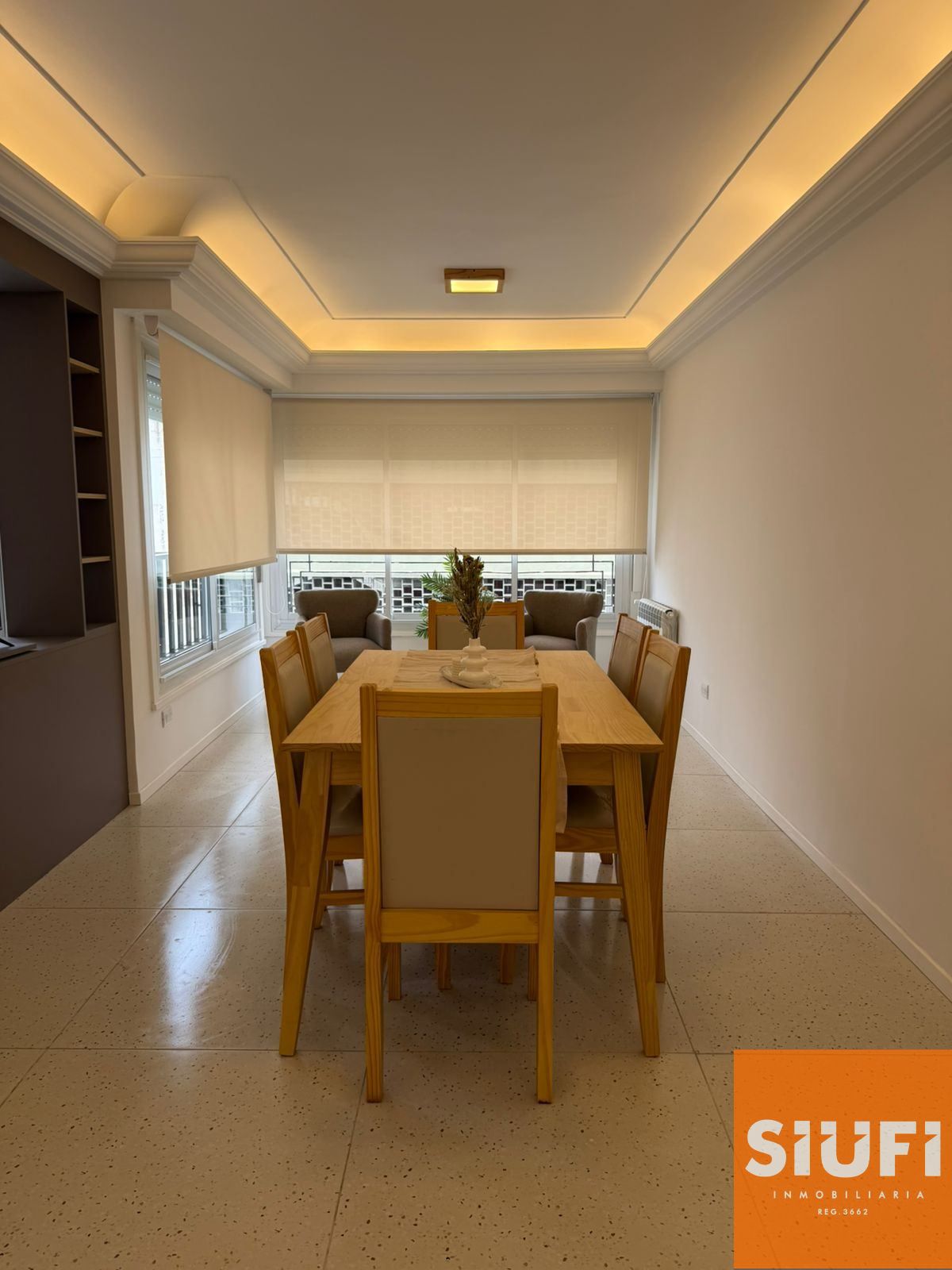 Living comedor con salida al balcón y vista lateral al mar y al casino.