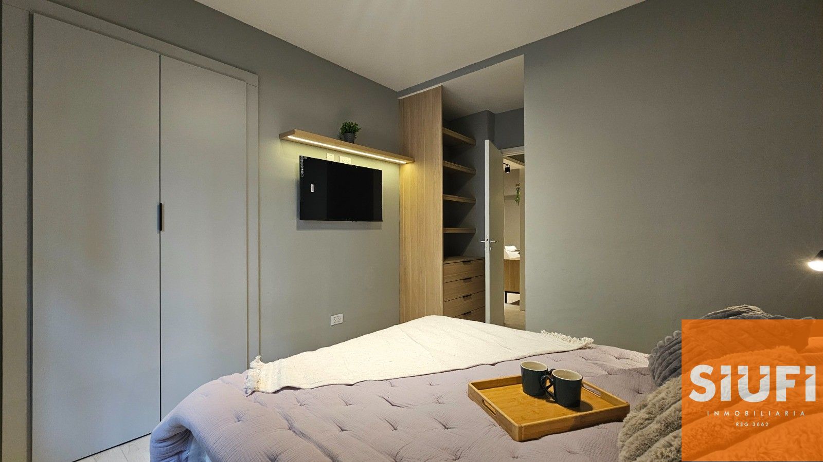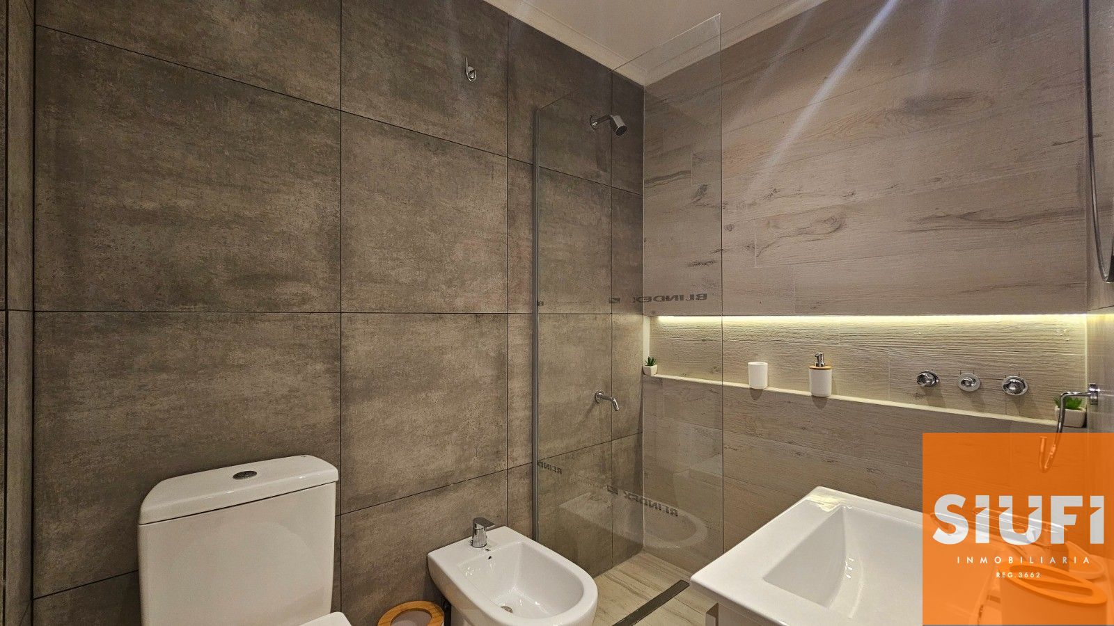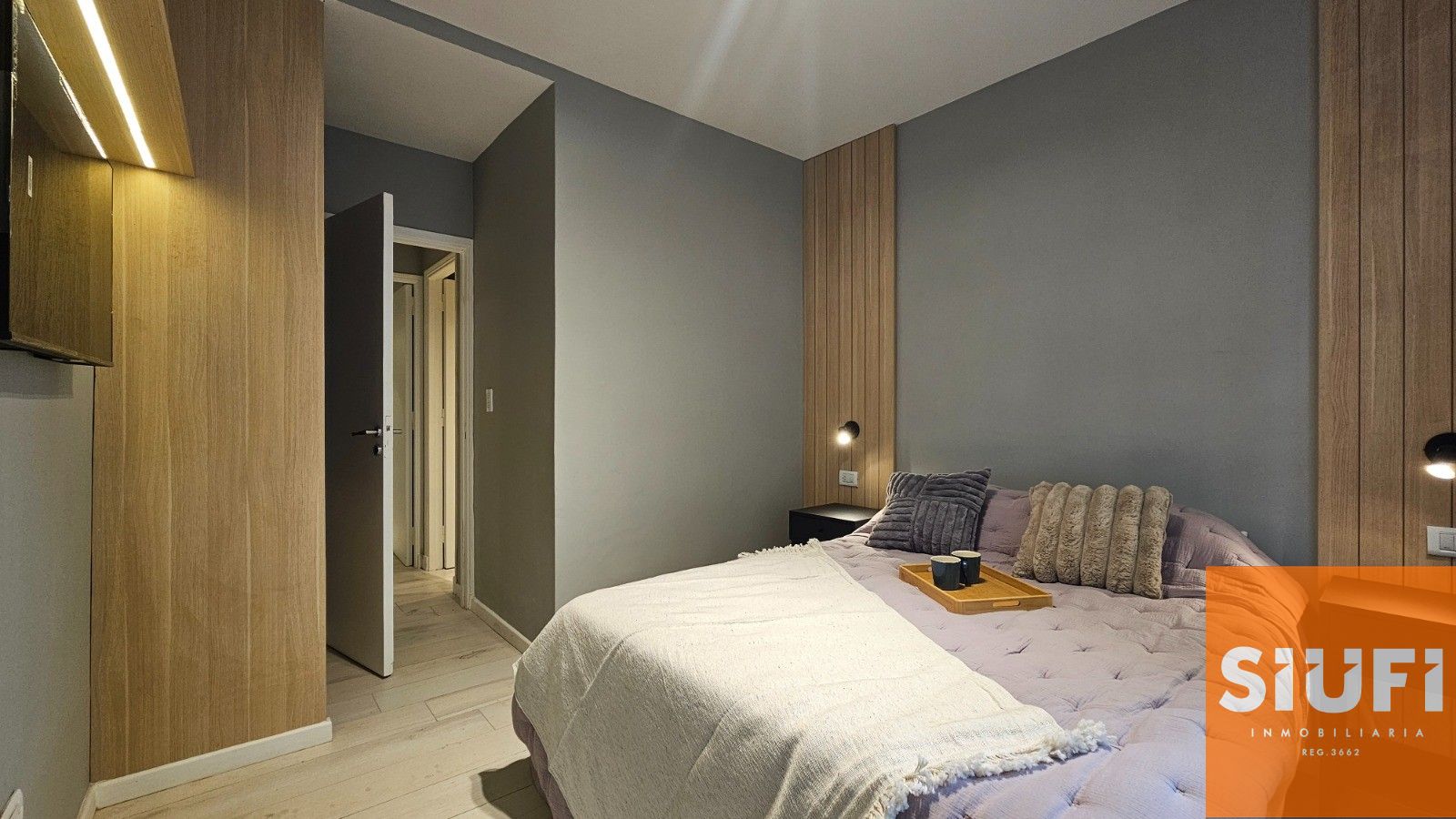 Mediante distribuidor accedemos al baño completo con mampara y a los dormitorios, uno da al aire y luz con calefactor de tiro balanceado y placard empotrado. Y el otro dormitorio que da a la calle Corrientes con dos placares y calefactor de tiro balanceado.