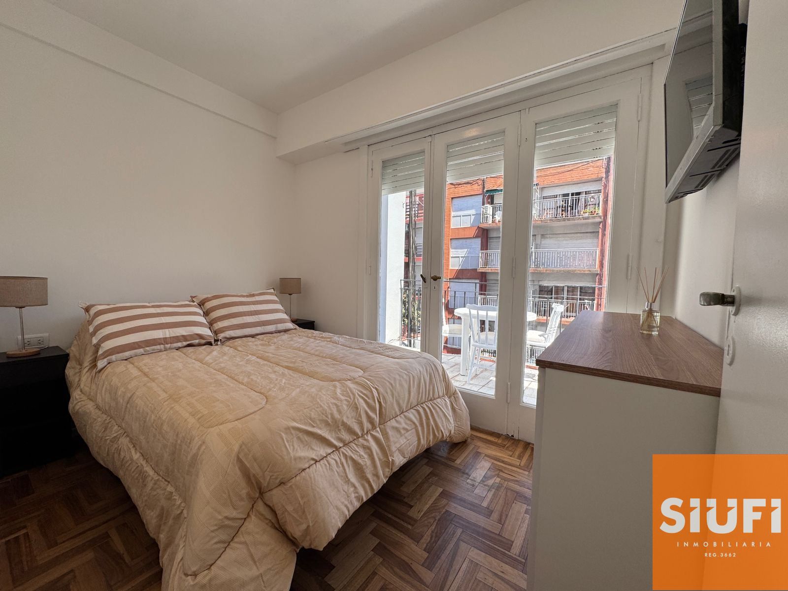 Dormitorio externo con salida a balcón corrido.